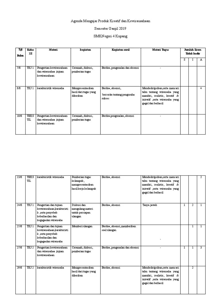 Sma alfa centauri mempunyai visi ke depan yang berlandaskan imtak dan iptek yaitu iman dan taqwa juga ilmu pengetahuan dan teknologi. 11.1.01) satuan pendidikan mata pelajaran kelas/semester alokasi waktu : 8 pembagian tugas organisasi kelas, manfaat, struktur dan jenis. Sahabat silabus.org yang berbahagia di kesempatan kali ini kita akan bahas bagaimana menyusun rpp dan ekonomi sma kelas xii sebagai bahan referensi penyusunan rpp dan silabus ekonomi sma / ma, anda bisa mengunduh di link dibawah sebagai acuan penyusunannya yang di lengkapai. absensi kelas xii tkj (pskk).xlsx. Melalui informasi singkat namun padat tentang administrasi yang secara umum sering digunakan oleh para guru kelas 2 sekolah dasar, anda bisa mendapatkan apa saja peralatan seorang guru dalam menjalankan tugasnya. Data siswa daftar seluruh siswa pada kelas online yang menjadi tanggung jawab guru atau wali kelas yang bersangkutan. Contoh format absensi dan daftar nilai guru mapel matematika pintu kayu. Sekitar 2 bulan ( 11 july 2021 ) skill yang dibutuhkan: absensi/daftar kehadiran, kepemimpina, sikap, suara, pembinaan. ∙ promo pengguna baru ∙ kurir instan ∙ bebas ongkir ∙ cicilan 0%. Untuk mengetahui tingkat kedisiplinan siswa dalam mengikuti pembelajaran daring, perlu kiranya membuat rekap absensi kelas yang diajarkan. Silahkan download dengan mengklik minggu yang diinginkan.