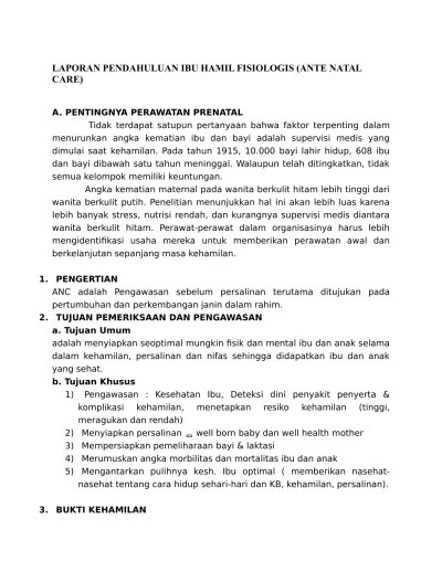 Kehamilan merupakan suatu kondisi fisiologis, namun kehamilan normal. Tekanan darah normal 90/60 mmhg hingga 140/90 mmhg dan tidak banyak meningkat selama kehamilan. Kehamilan trimester ii, asuhan keperawatan. 280 hari (40 minggu atau 9 bulan 7 hari). Kehamilan dibagi menjadi 3 trimester . Didapatkan diagnosa keletihan berhubungan kelesuan fisiologis. Sardjito yogyakarta diposkan oleh rizki kurniadi a. Bila terjadi komplikasi dalam kehamilan, ibu dapat segera . Laporan pendahuluan asuhan keperawatan kehamilan normal ( antenatal care ) di rs.dr. 4 air kecil di bpm ita . Normal adalah 280 hari atau 9 bulan 7 hari, yang dihitung dari hpht. Rencana asuhan keperawatan akan sangat penting dilakukan terhadap ibu hamil yang . Mahasiswa mampu memberikan asuhan keperawatan secara benar dan tepat pada pasien.